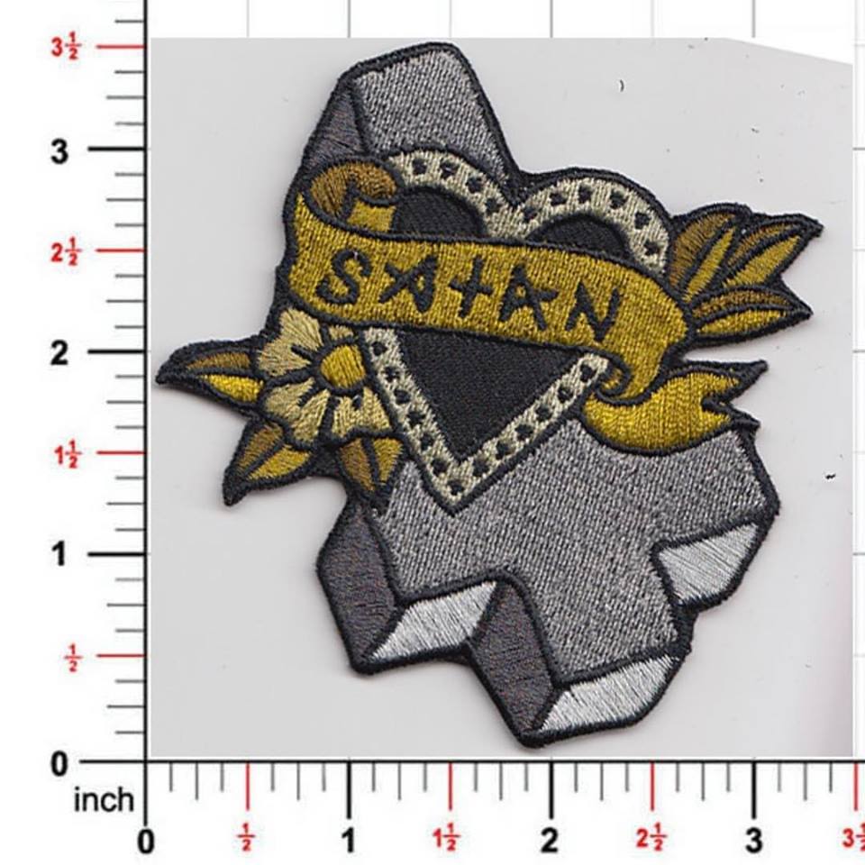 Say you love Satan.. by purchasing this embroidered patch! Featuring art by fancy tattooist Alice of the Dead, this 3'x 3' iron-on backed patch is the perfect way to share your special relationship with the dark one.